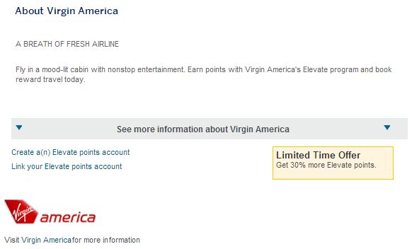 之前介紹American Express Premier Rewards Gold的時後提到過,MR點數其中一個誘人的地方在於它的轉換獎勵,而自即日起至4/30/2014止,MR轉換成Virgin America Elevate點數可以享有30%轉換獎勵。