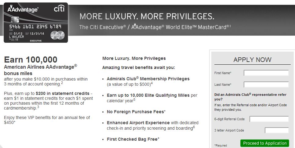 1. Citi Executive AA World Elite 100k sign up bonus + $200 statement credit